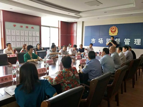 7月12日上午,市政协副主席万永格率部分政协委员到我局调研食品安全工作。开发区党工委委员、管委会副主任张海民,市食药局副局长崔连民,开发区市场监督管理局局长王者庆陪同。
